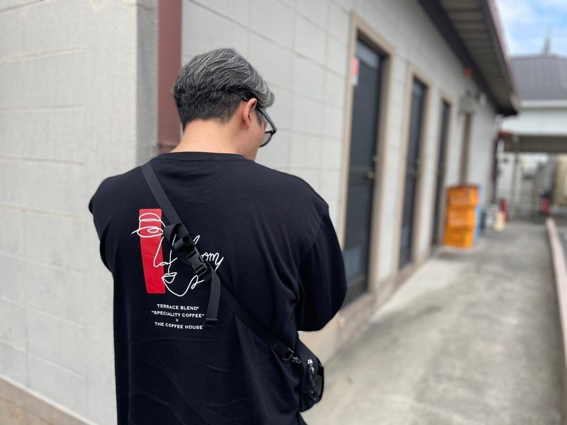 無類のコーヒー中毒のオーナーが、中山下テラス6周年を記念してローカル人気コーヒーショップキノシタショウテンさんとコラボしたコラボアイテムとなります。ボディーは秋口から着れるように5.6オンスに1.6cmのリブが付いて、生地はコットン100%。